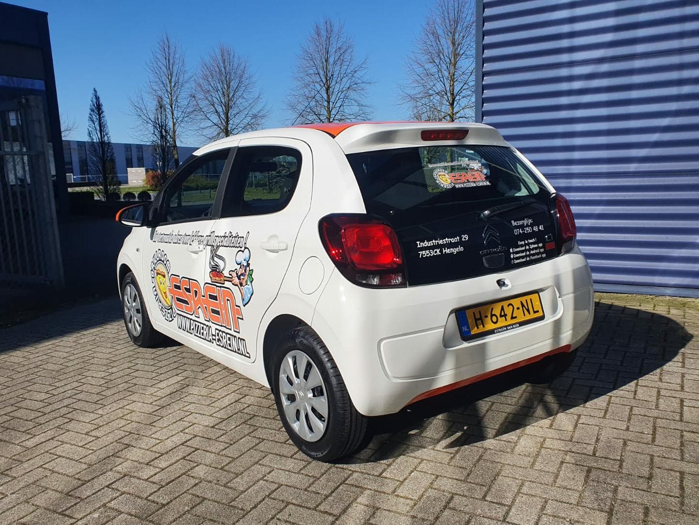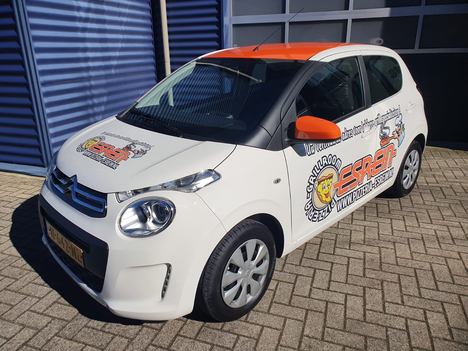 Wij hebben de nieuwe bezorg auto van grillroom Esrein bestickerd. Ook hebben we de dak en spiegels voorzien van Avery Supreme wrapfolie.